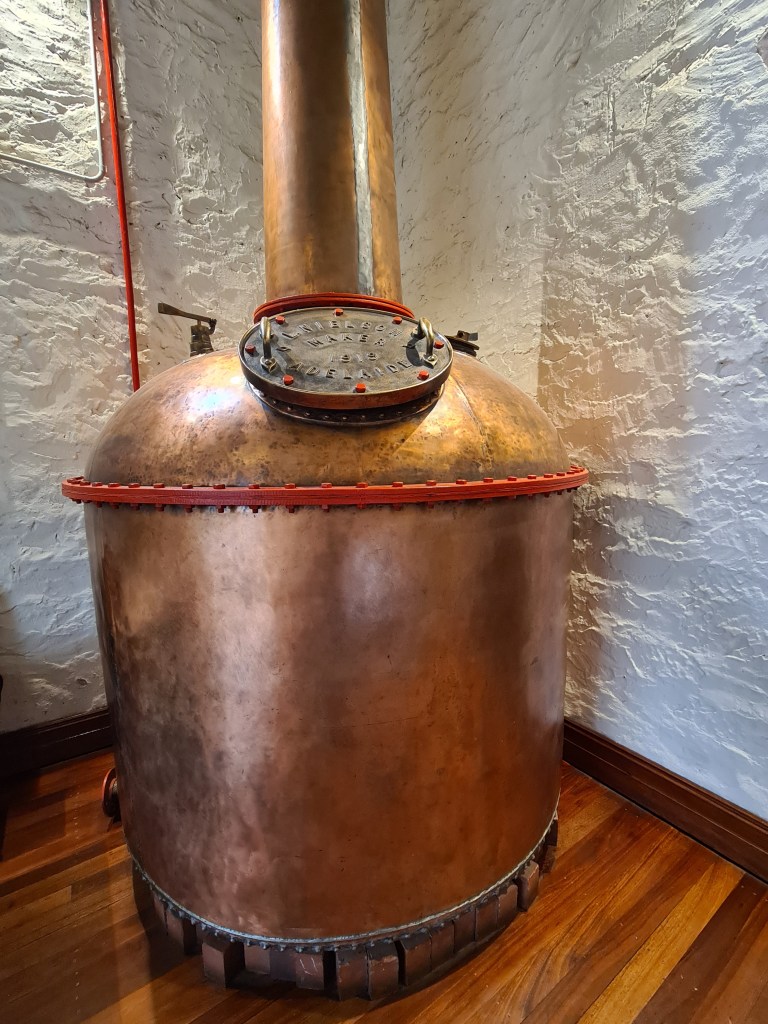 The heritage listed building once served as a distillery and a large copper still remains as a feature.