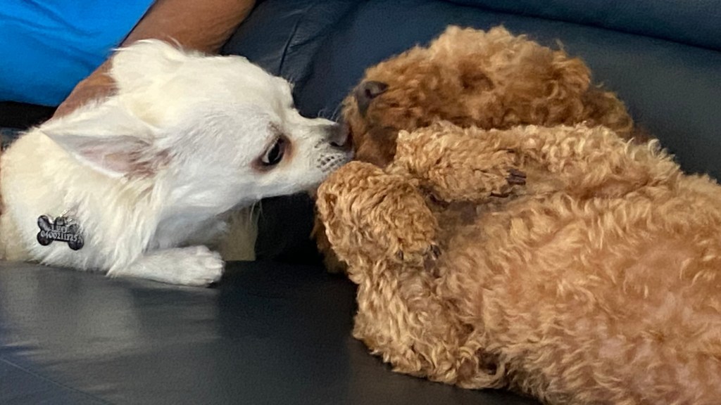 A chihuahua cross pug (Chug) named Micron visited Bluey. The little fella kept trying to get to Bluey’s willy. He succeeded by sneaking in between Blue’s hind legs.
