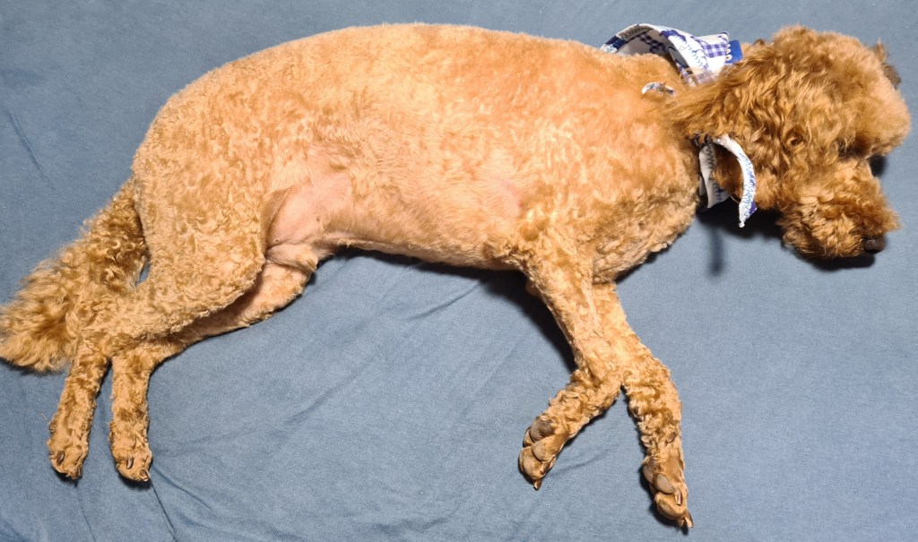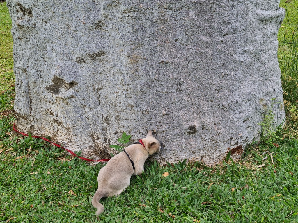 I let Tilly out for a while but she attracted several birds making a racket like a barking dog. These birds flit about flapping their wings, and spreading their tail feathers trying to intimidate her.