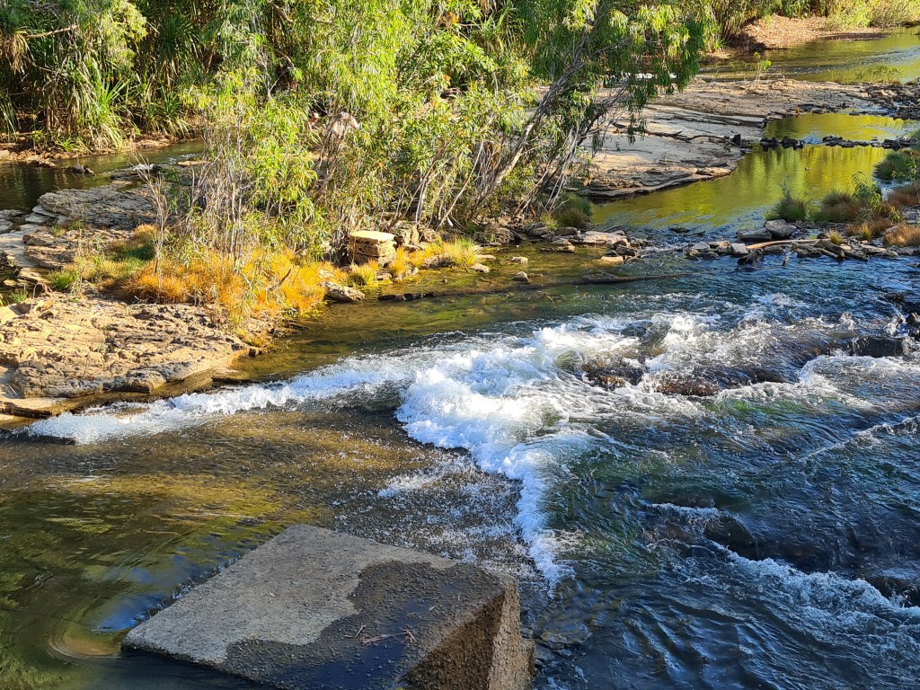 I had time to make my $2 cup of tea before boarding the boat. Four hikers with large backpacks were dropped off on the other side of the river to start their 60+kms hike to Edith Falls. Most of the other passengers on the 7am boat were doing an APT bus tour.