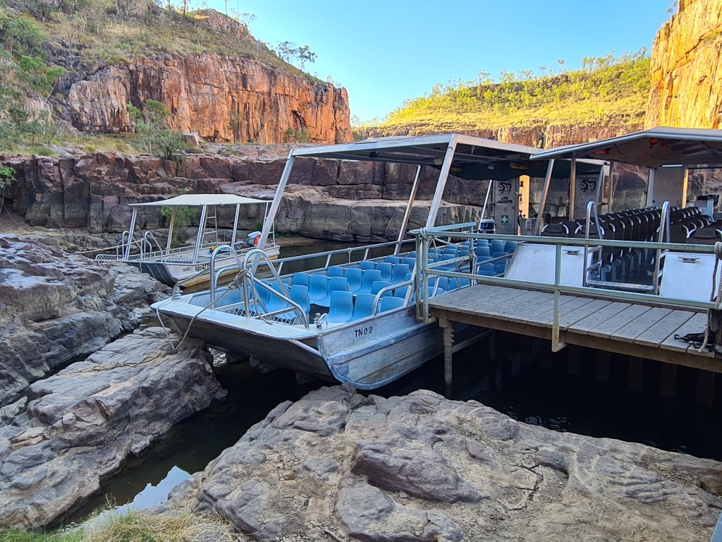 It was an obscenely early start to catch the 7am tour of Nitmiluk (Katherine) Gorge. I had to be there by 6.45am and it is a 30 minute drive. It was fortunate I had left our caravan park early, because the emailed information failed to mention the 400m walk from the car park!