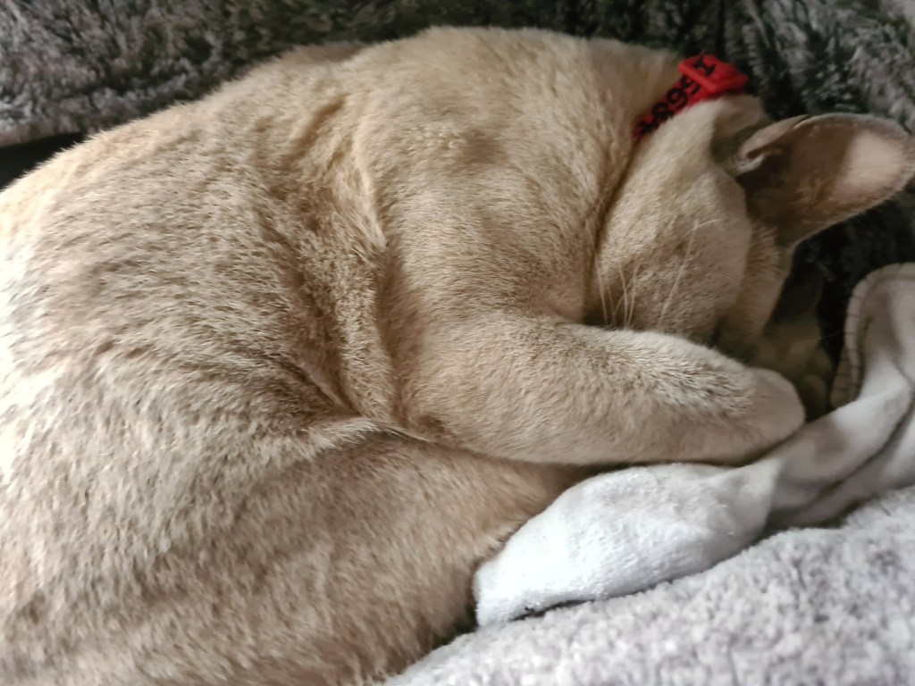 Tilly was busy during the night, checking all windows for invaders. She was still sleeping this morning cuddling one of my socks.