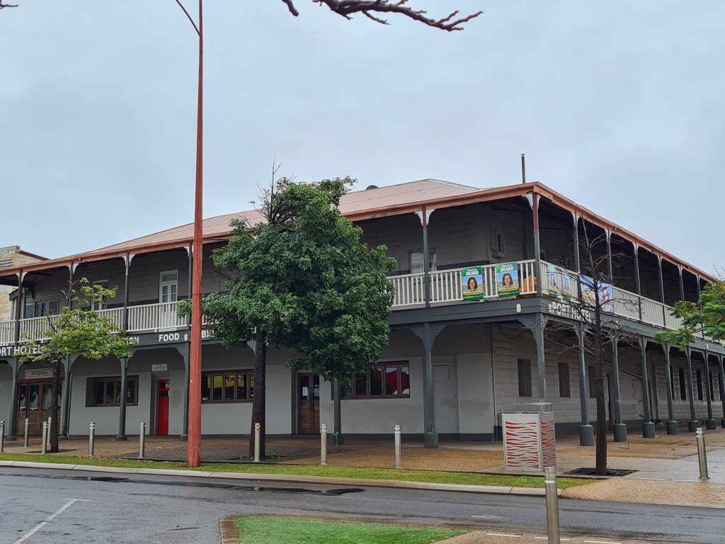 From our camp site we can see the port so went for a drive there. The jetty kiosk no longer operates, but we remembered having lunch there when trucks drove very close carrying live cattle for export.