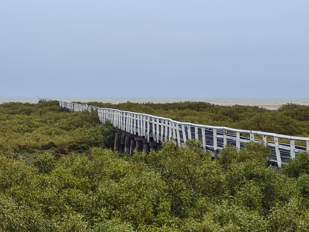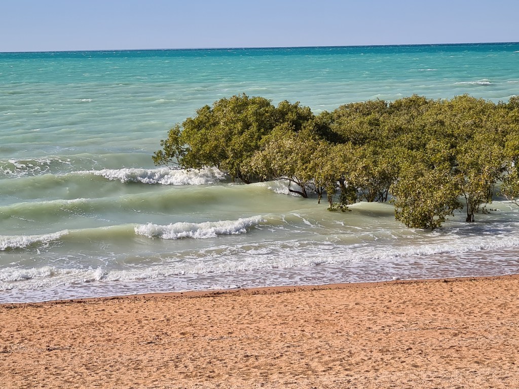 Last night the calm weather ended when the wind strengthened with gusts up to 50kph. The Bushtracker was rocking and rolling as the gusts hit the side of the van. The wind continued until mid afternoon, turning the mangrove into a surf beach.
