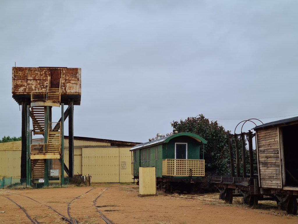 Bluey was keen to go for a walk with me exploring the facilities here, including a pool, lawn bowls green, picnic and BBQ areas, and rows of old dongas bought from mining sites. I finally realised Blue wanted to walk around the caravans – he was searching for his friends in the motorhome! He has been subdued since little Leo and his mums left his pack. At beer o’clock he is ready to leap off the bed every time Anita opens the fridge. He kept an eye on those pesky children.