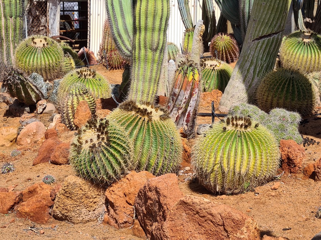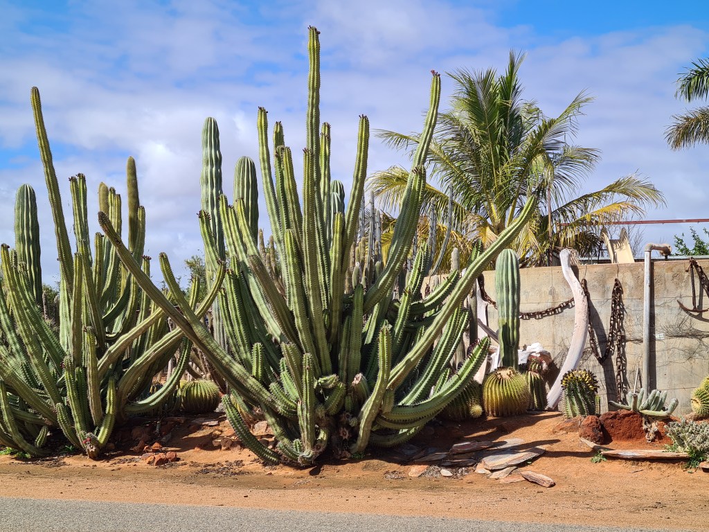 The most interesting property along the Fruit Loop is a private home with a large cactus garden. There is also a whale skeleton in the garden.