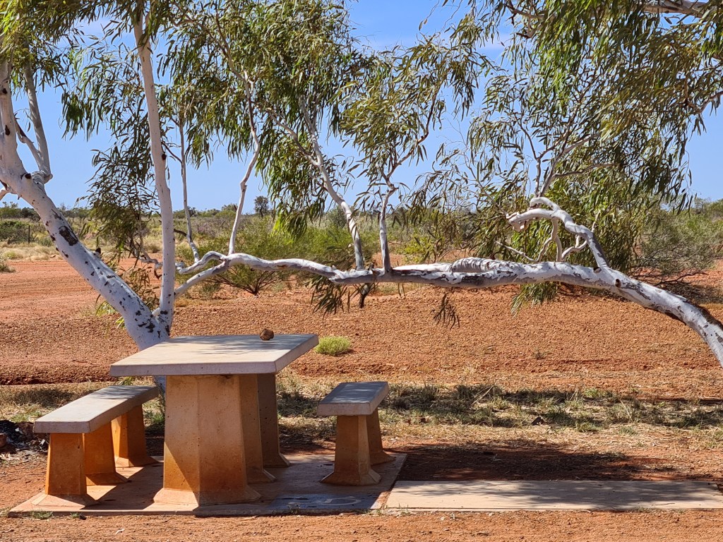 The scenery continues to be dramatic, but roadside parking bays are not generally near the best views. Mining is big in this area and we have seen dozens of road trains.