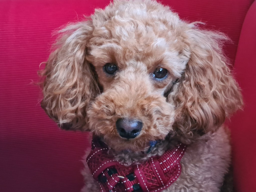We had accumulated washing so put a load through the laundry wachine machine. Walking around the park we met a black poodle the same size as Bluey, and who squats the same as Bluey. Two other poodle cross dogs joined the sniff and greet.