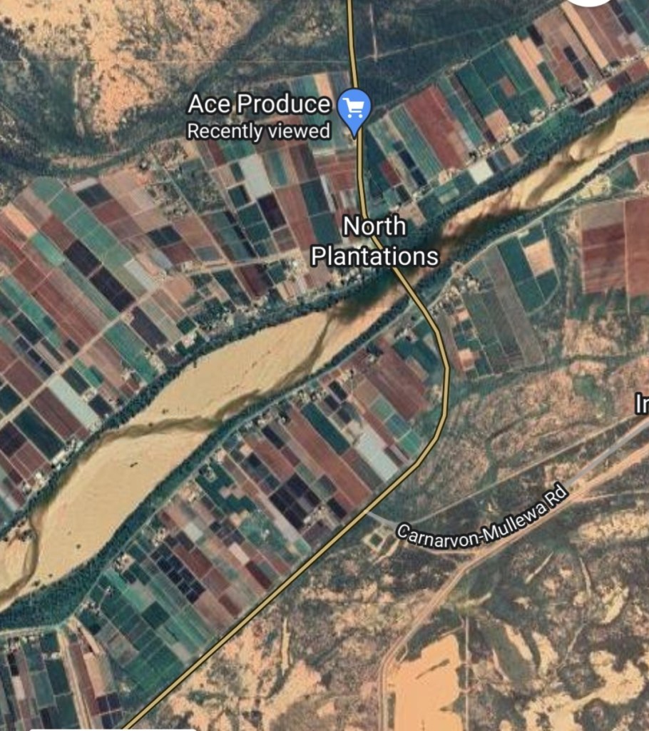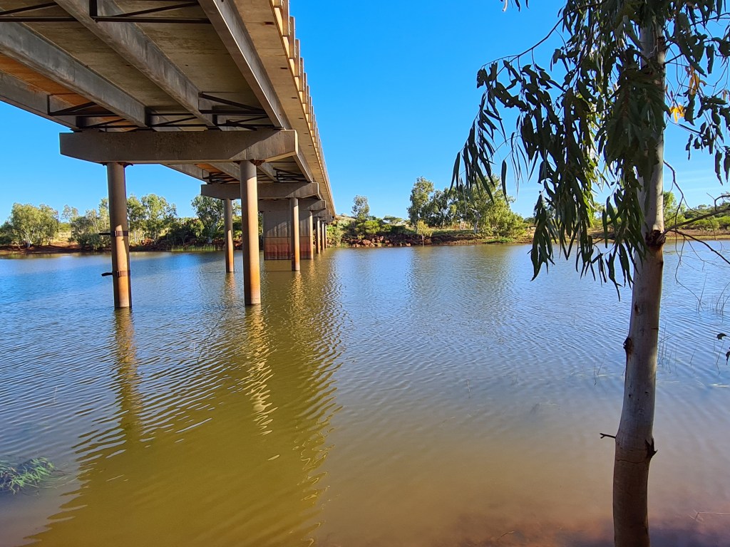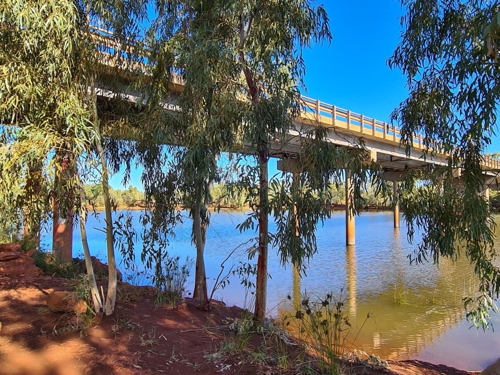 No water was evident in the river at the Bibbawarra Rd bridge, but there was some under the NW Coastal Hwy bridge. Levee banks line the river which periodically floods causing extensive damage around Carnarvon. Our caravan park was completely inundated in 2010.