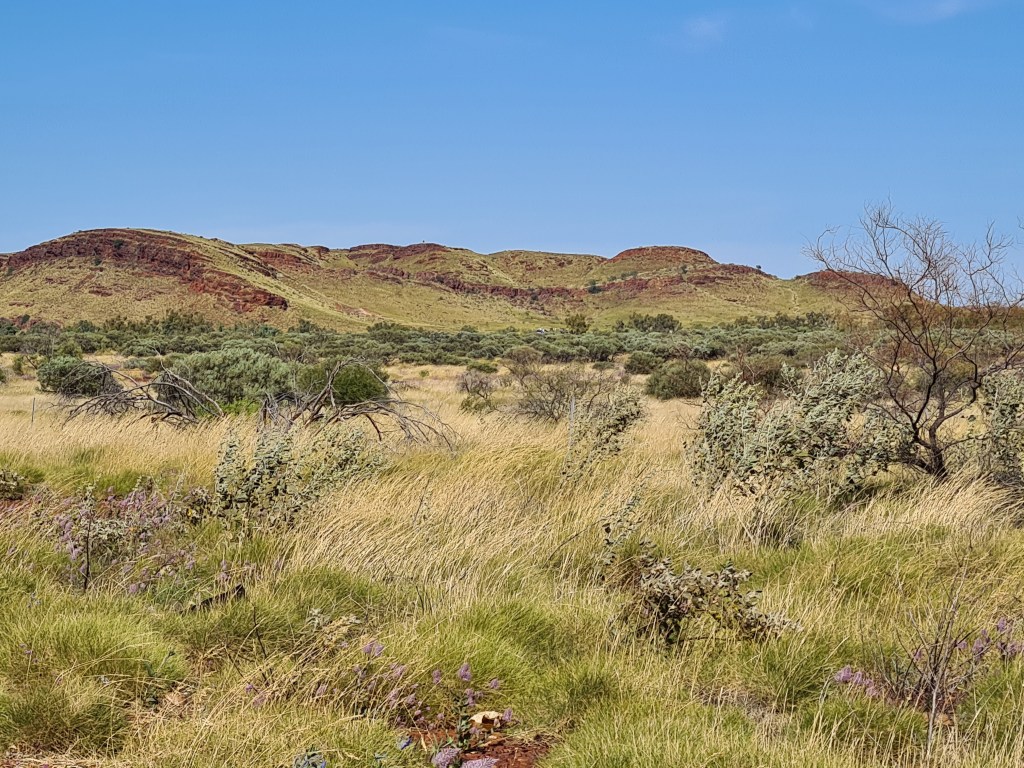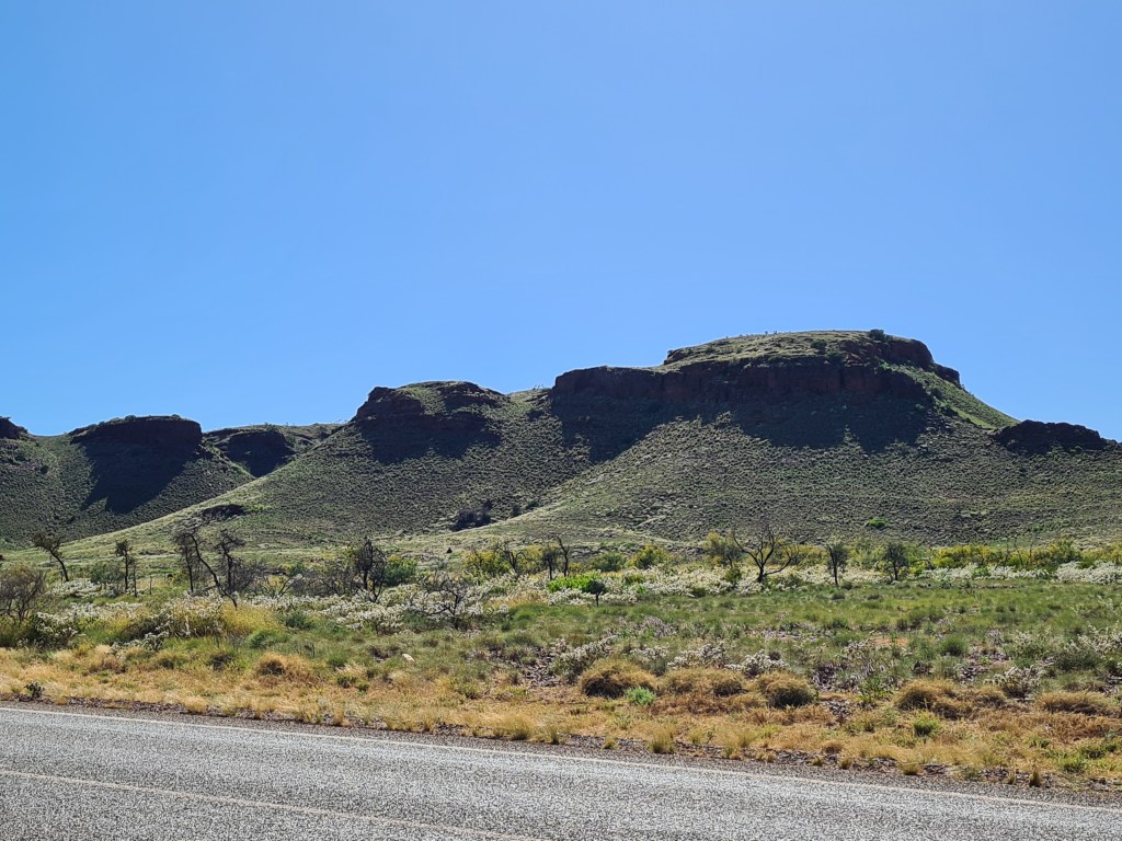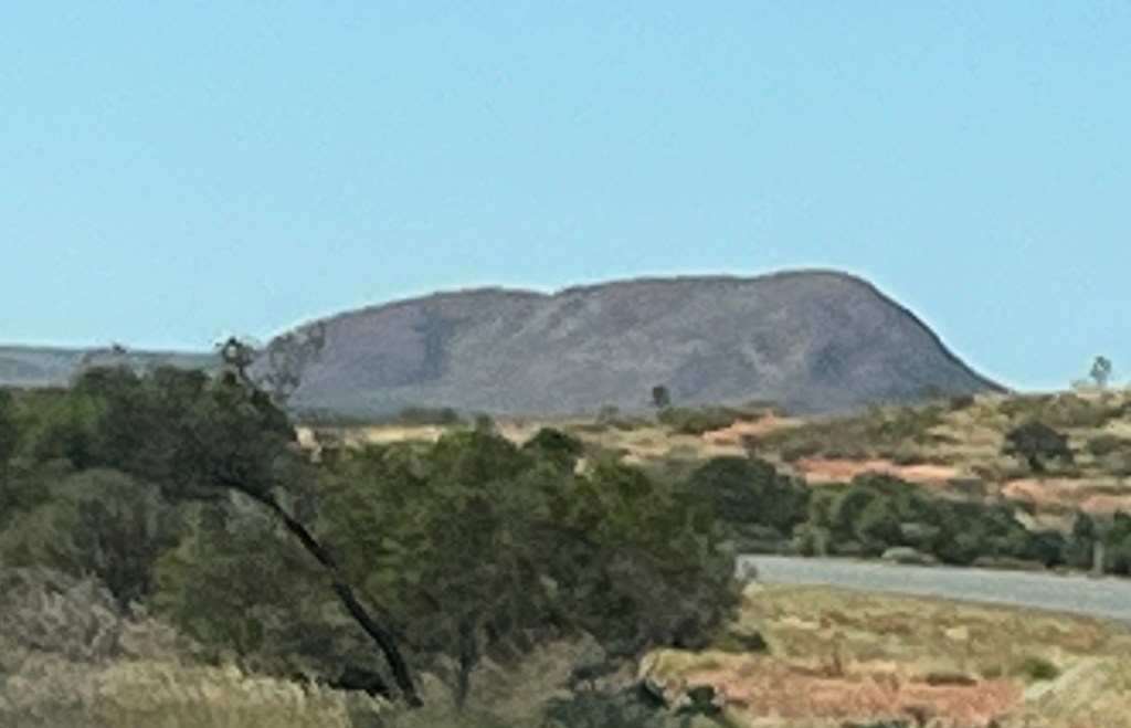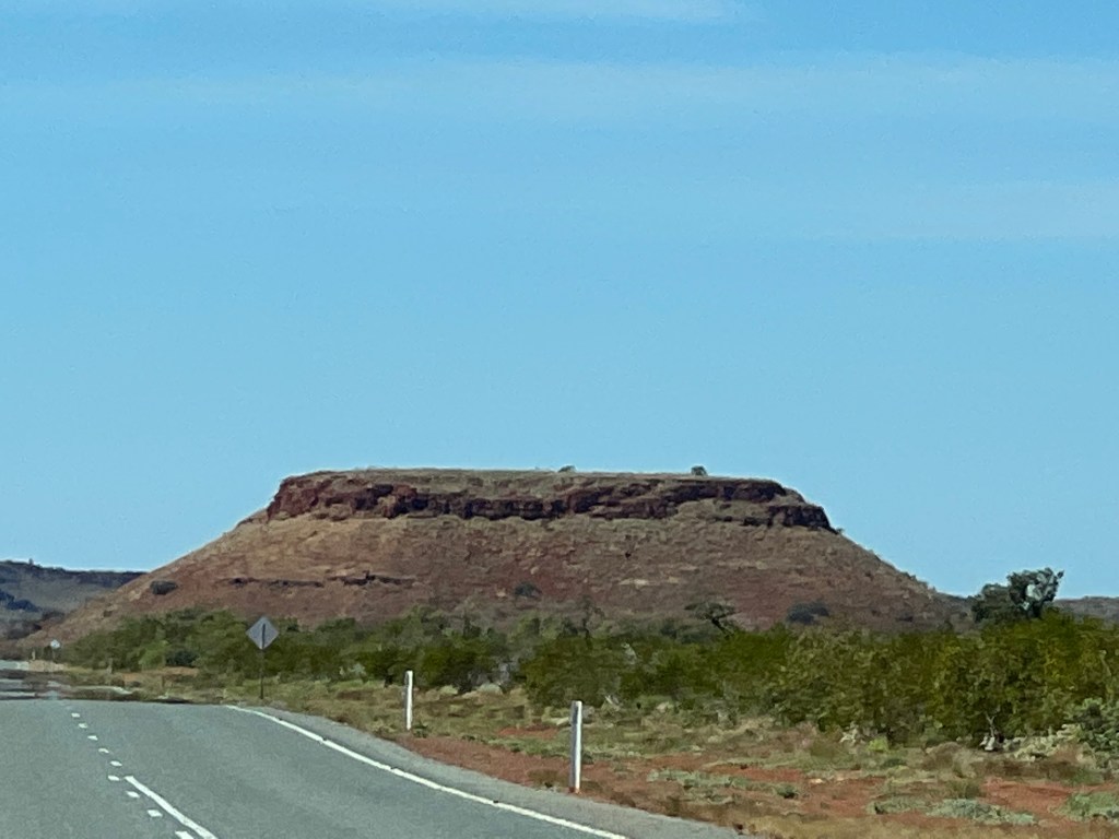 The scenery changed when we reached the Pilbara, with rocky outcrops, hills and small mountains. My favourite is this flat top rock.