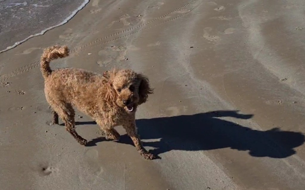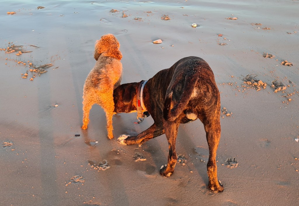 Bluey had a lovely time running in the sand and splashing in the water, except Harvey resumed his inappropriate interest in Bluey!