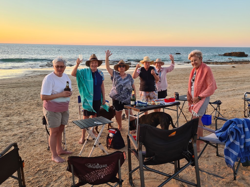 On the beach we met up with eight Roadie friends and their three dogs. They have been staying here for a couple of days and are moving south to Pardoo Station.