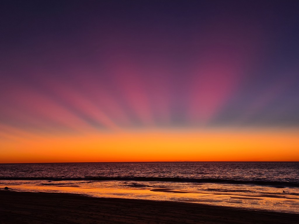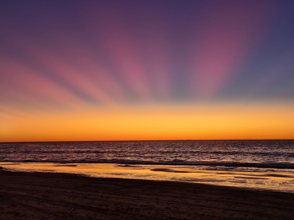 It is a bit of a walk to the beach, but it was fantastic sunset. There were unusual rays in the sky we have never seen before.