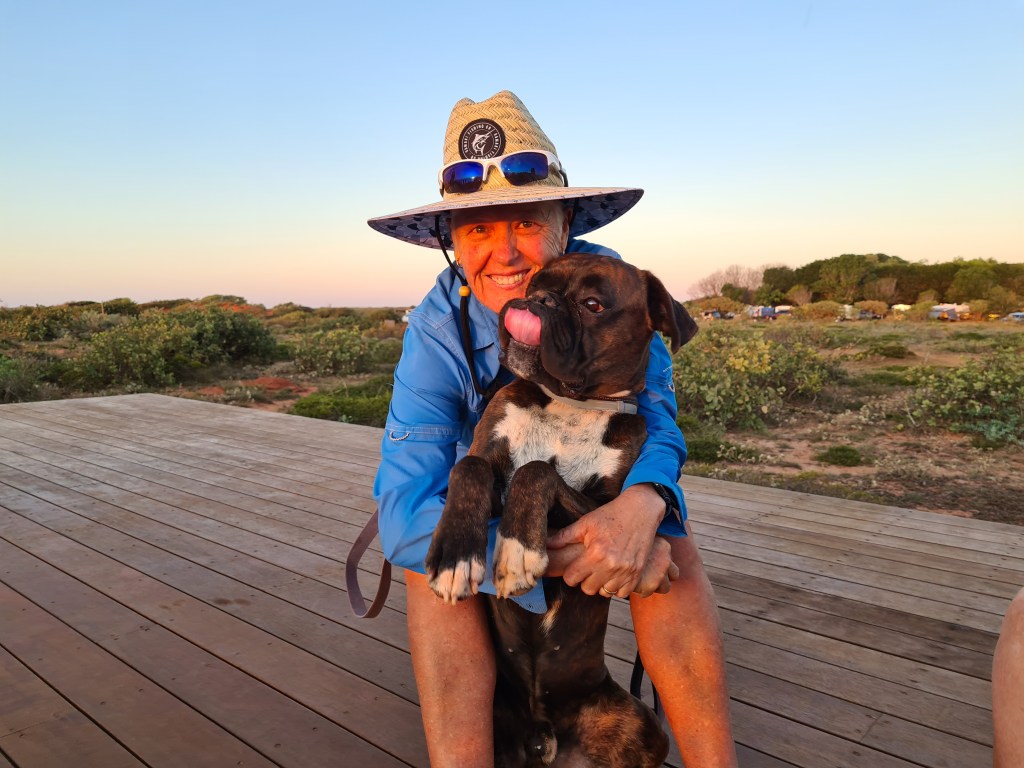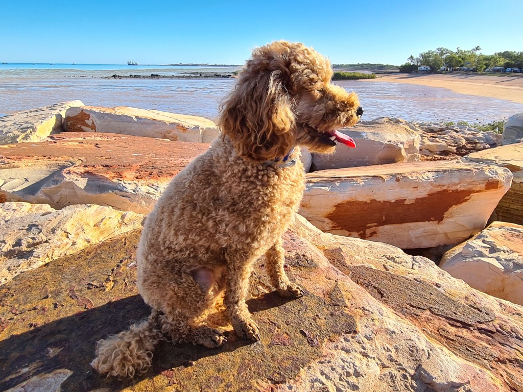 I took his tick collar off at the beach but somehow managed to lose it. This is an essential for dogs in this part of the country because of a deadly disease spread by brown dog ticks. We will have to be very careful to keep him away from grass and bushy areas where ticks might be found. Our first stop in Broome will be a vet for a new collar.