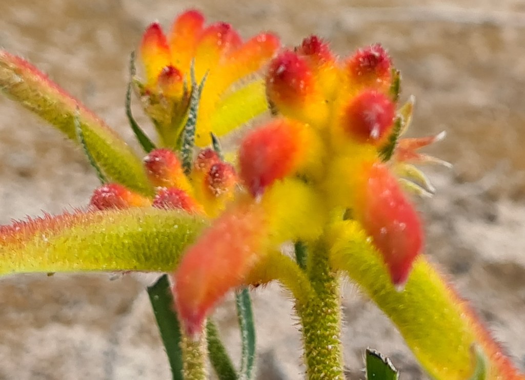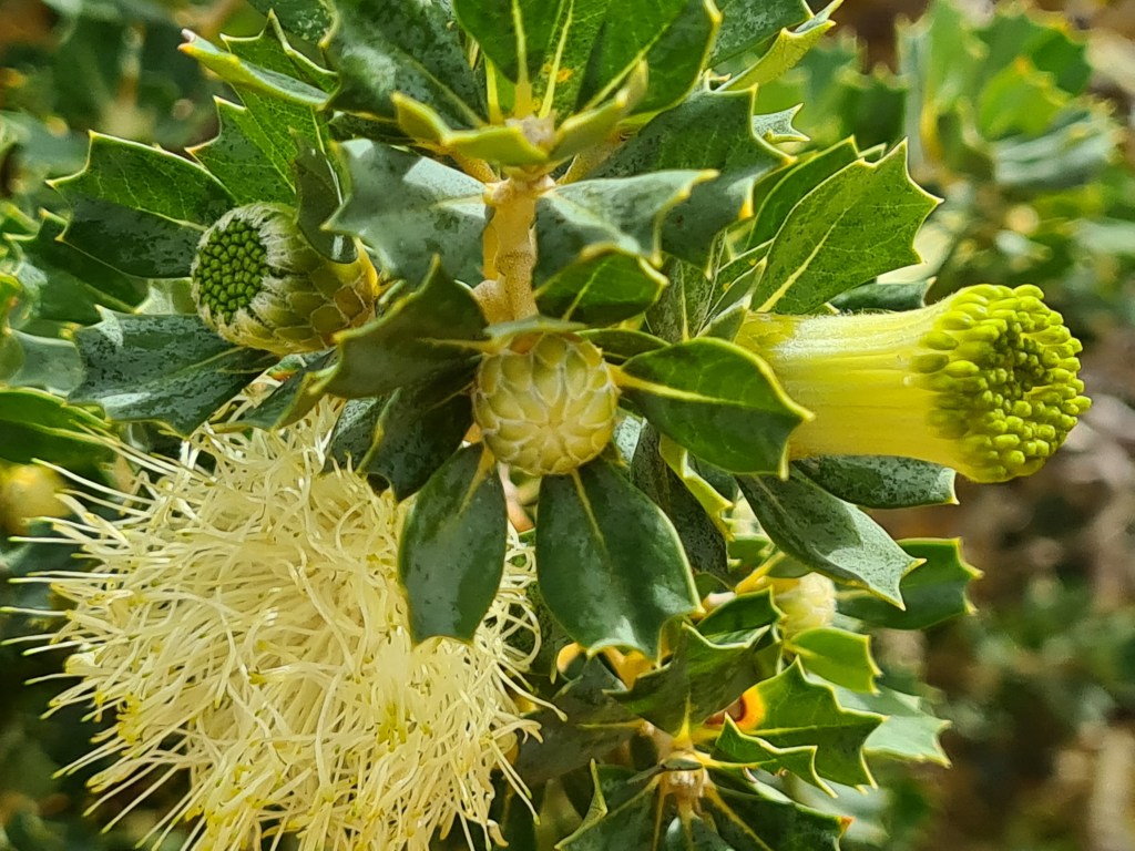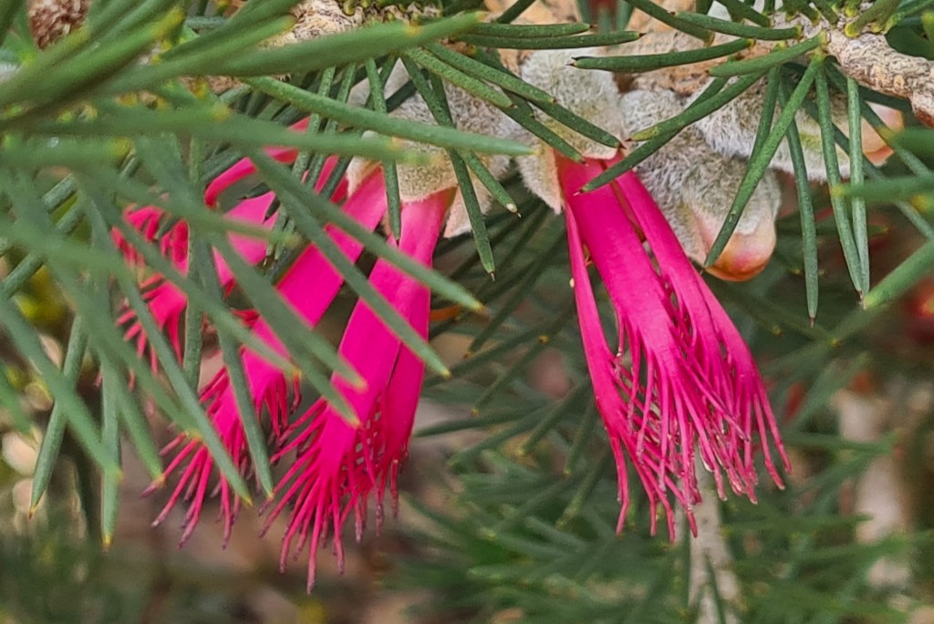 There are more than 6000 varieties of WA wildflowers. There is a tree outside our park that has fruit like grapes or olives, but is neither, and a tree with large gum nuts.