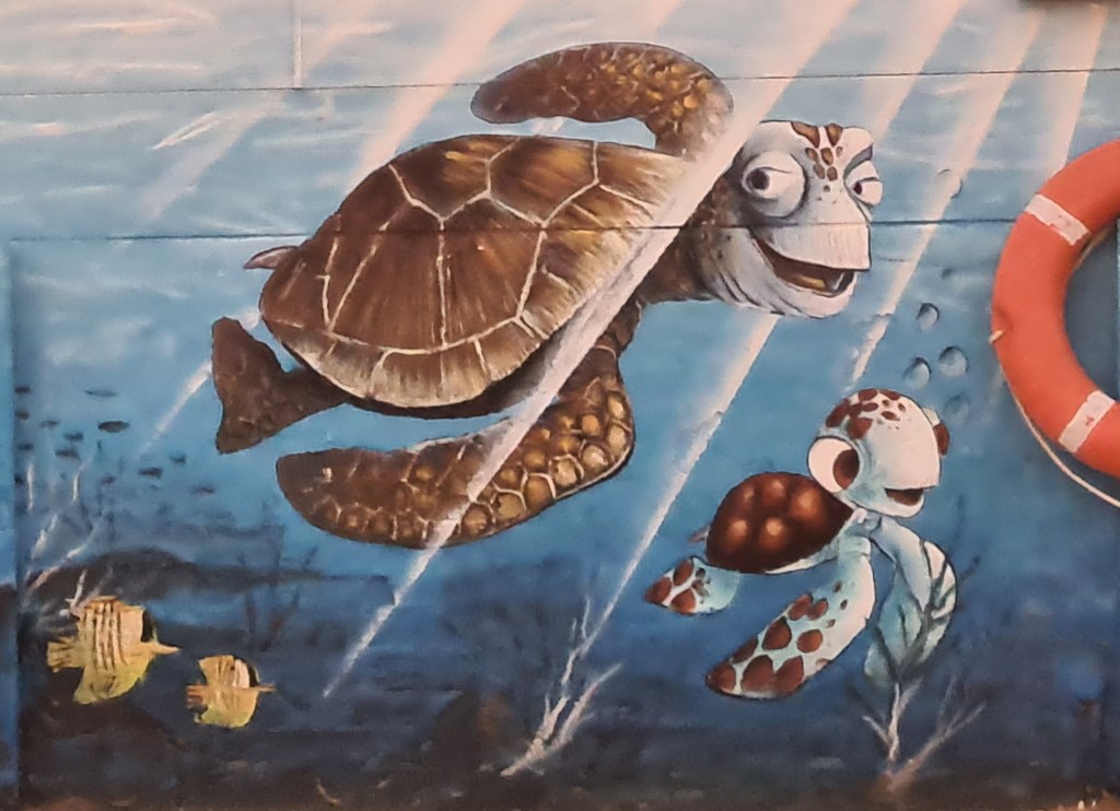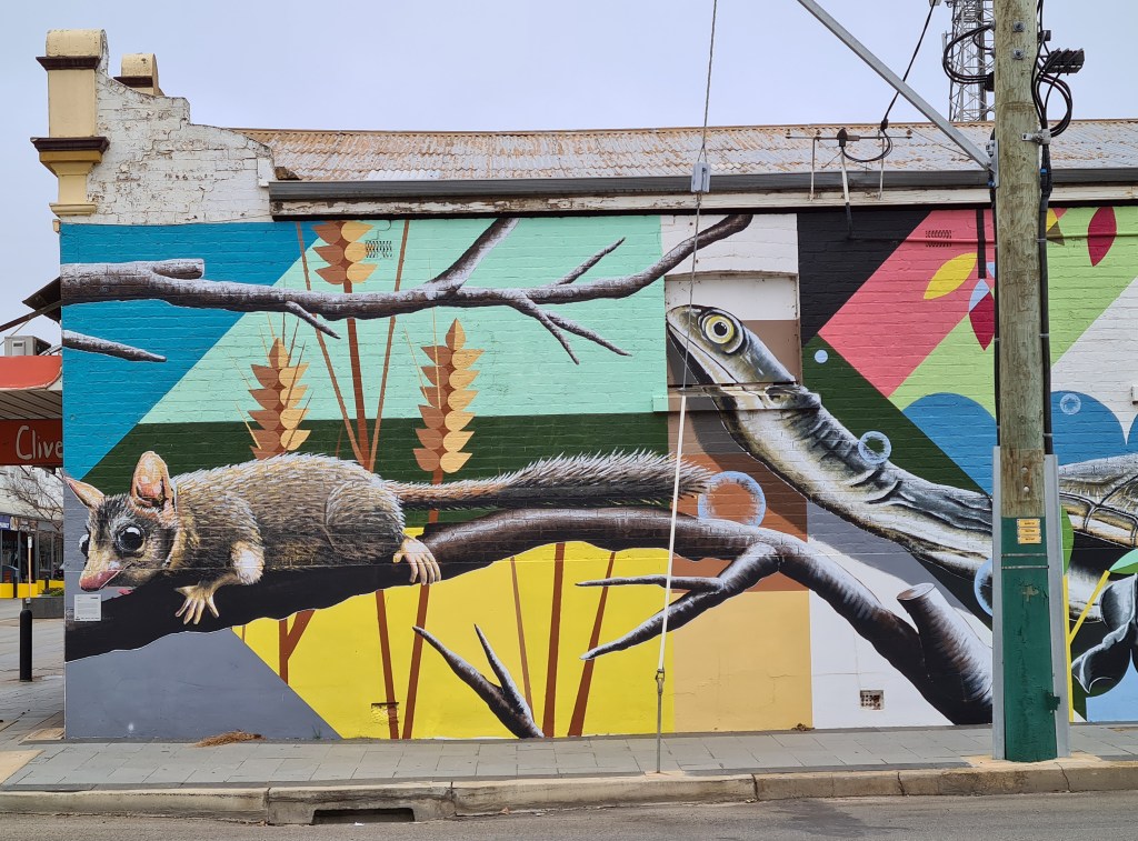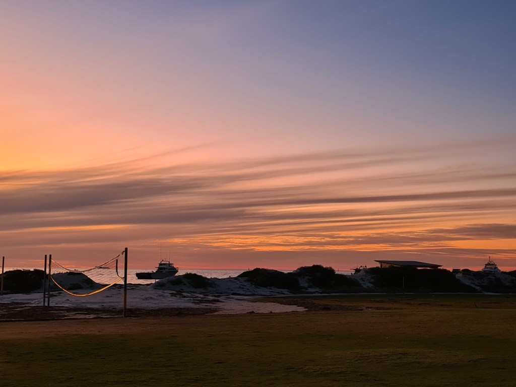 We are staying at the Sunset Beach Holiday Park on the northern side of Geraldton. The mural beside the pool is good. Tilly was a big hit with our adult neighbours and a group of children. Blue hid from kids inside the Bushtracker.