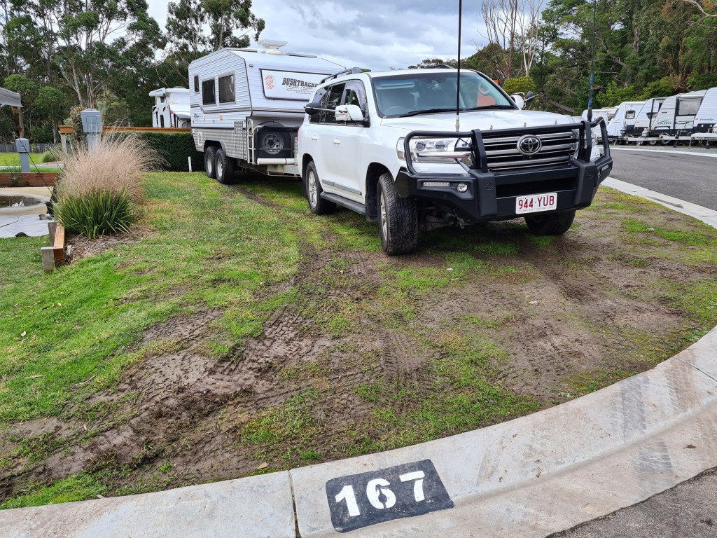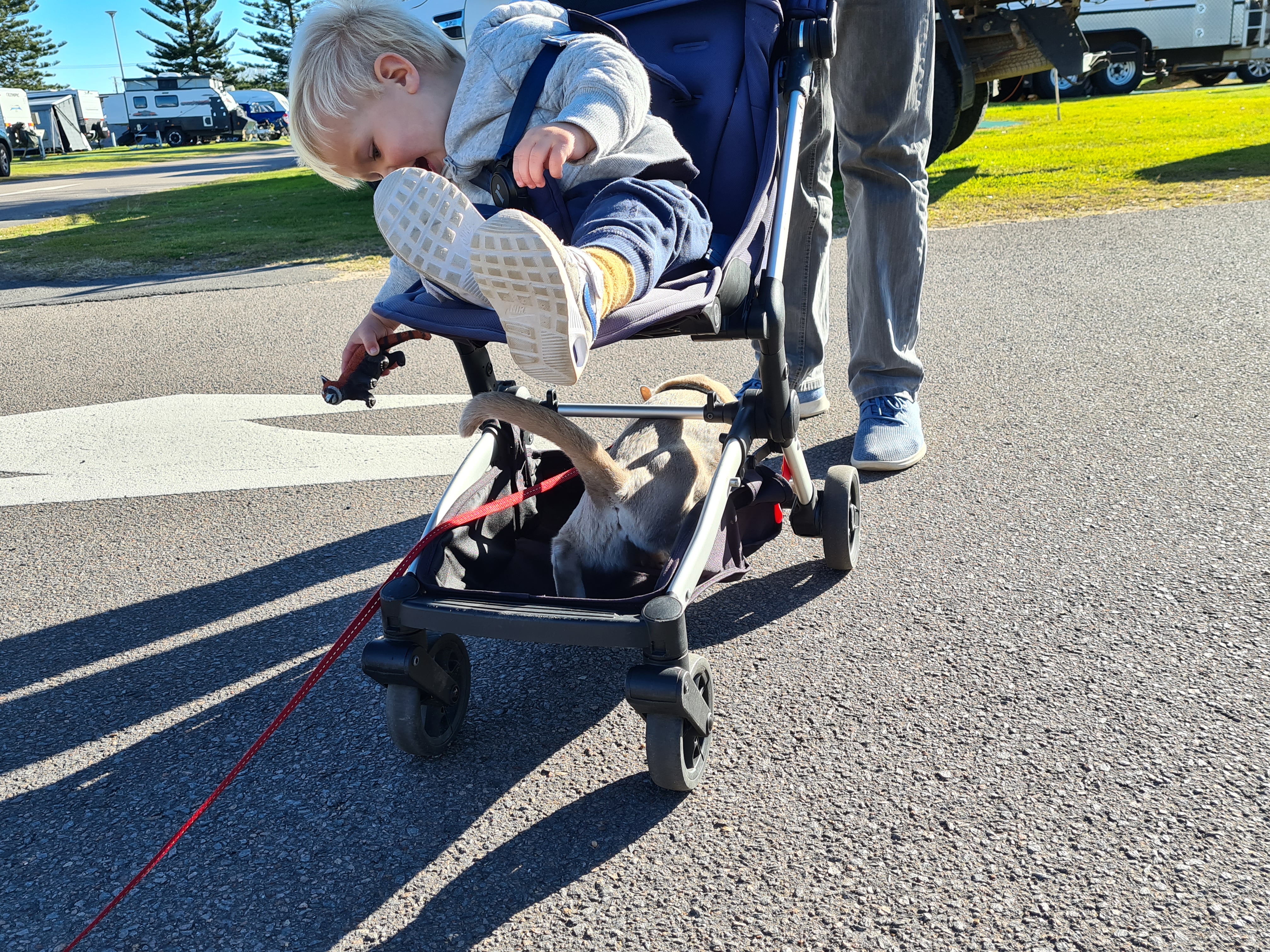 I took Bluey and Tilly for a walk, but tied Tilly to the van while Blue met the 60kg black European Shepherd that is living in the park. This will not be a long standing dog-to-dog friendship.
