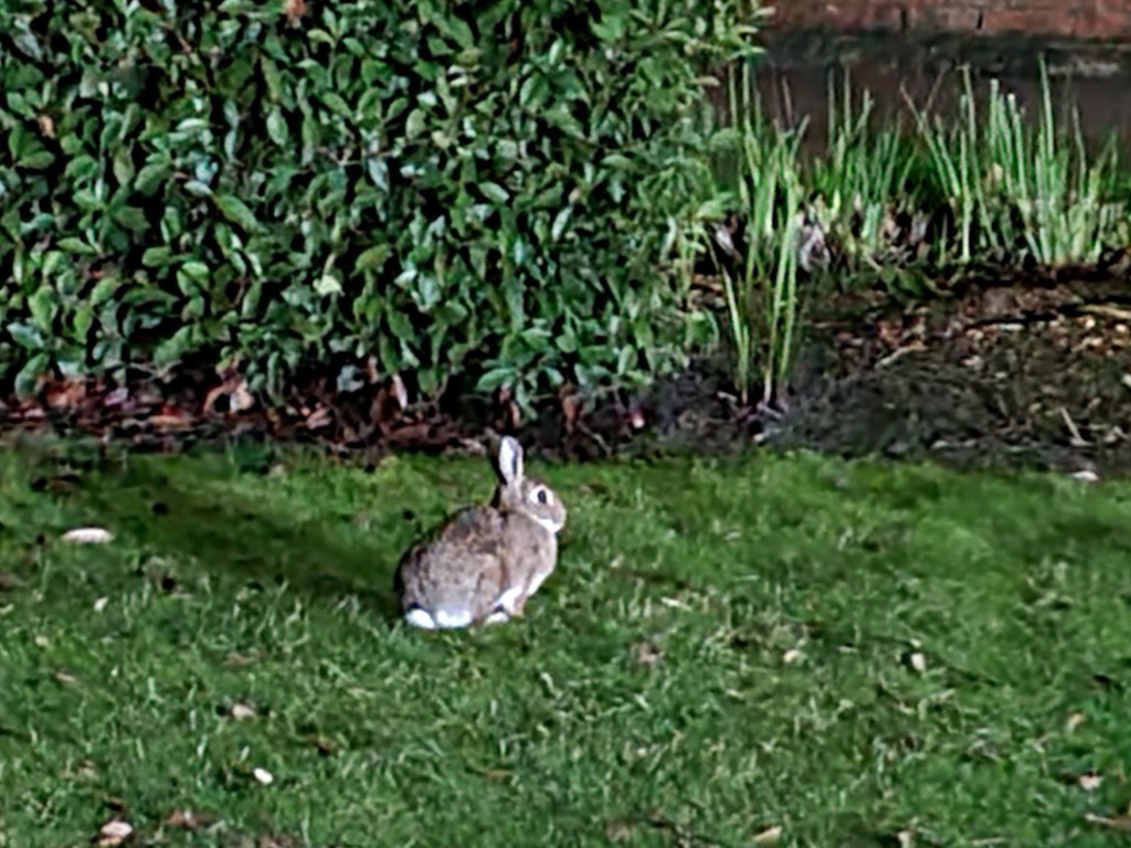After making sure the big dog had returned to his van at the bottom of the park, I took Tilly to an empty caravan site with fencing on three sides. She and Blue had a wrestle together but Tilly was more interested in that rabbit.